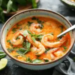 This Easy Thai Shrimp Soup is a simple, comforting dish that captures vibrant Thai‑inspired flavors in a creamy coconut curry broth. With minimal prep and quick cooking time, it’s ideal for weeknight meals and easily customizable to suit your tastes. Enjoy a nourishing bowl that feels like takeout but is much better made at home.