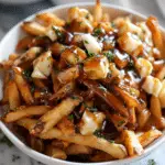 To reheat the fries, place them in the oven or air fryer until hot and crisp again. Reheat the gravy gently on the stovetop or in the microwave, stirring occasionally. The cheese curds can be warmed in a small saucepan over low heat or in short microwave bursts, stirring between each one. Assemble everything just before serving for the best texture.