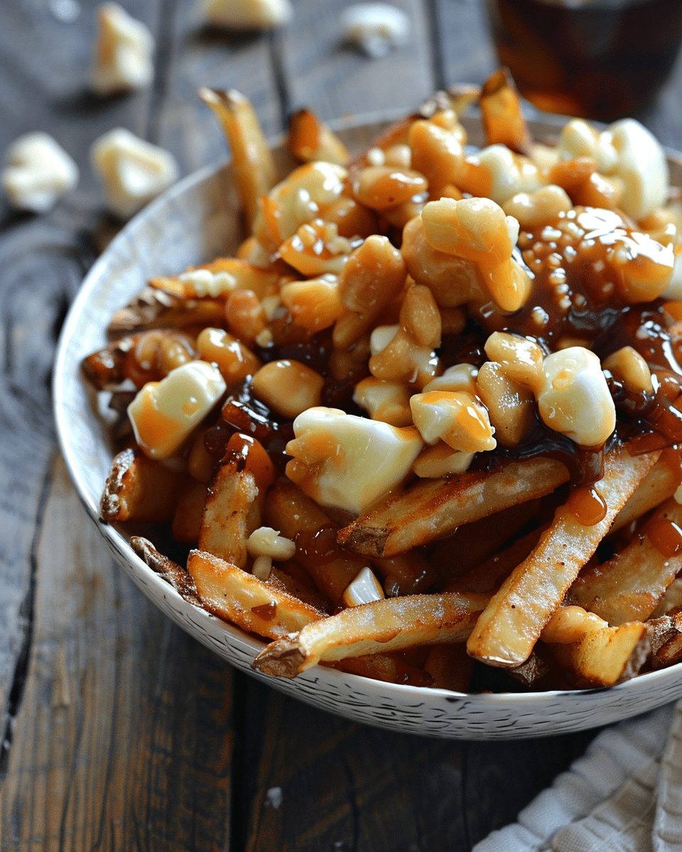 A comforting vegan twist on classic poutine featuring crispy oven-baked fries, rich savory gravy, and creamy tofu-based cheese curds. Perfect for a hearty, dairy-free indulgence.