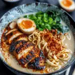 Fiery Chicken Ramen with Creamy Garlic Sauce is a bold and comforting dish that combines spicy seared chicken with rich, garlicky cream sauce and tender ramen noodles. Perfect for a quick dinner with customizable heat levels.