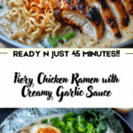 Fiery Chicken Ramen with Creamy Garlic Sauce is a bold, satisfying dish that brings the heat and comfort in every bite. With its creamy texture, spicy notes, and savory depth, it’s sure to become a go-to favorite for anyone who loves a kick in their comfort food. Try it tonight and enjoy a bowl full of flavor that’s easy to make and hard to forget.