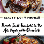 Store any leftover French toast in an airtight container in the refrigerator for up to 2 days. Reheat in the air fryer at 160°C (320°F) for a few minutes until warmed through and slightly crisp again. The chocolate sauce can be stored separately in the fridge and gently reheated before serving.