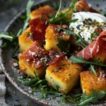 These Fried Polenta Bites with Parmigiano Cream, Bresaola and Arugula offer an elegant fusion of textures and Italian flavors. Whether for a dinner party appetizer or a special treat at home, the combination of crispy polenta, creamy cheese and savory toppings makes this dish unforgettable.