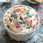 A quick and creamy funfetti Greek yogurt dip packed with protein and colorful sprinkles. Perfect as a sweet snack or party treat served with fruit or crackers.