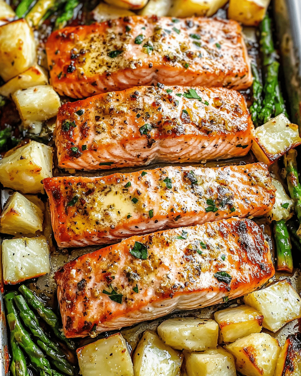 Tender, flaky salmon fillets baked in a rich garlic butter sauce infused with fresh herbs and zesty lemon. Quick, easy, and healthy meal perfect for weeknights or special occasions.