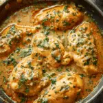 Store leftover chicken and sauce in an airtight container in the refrigerator for up to 2–3 days. To reheat, gently warm in a pan over low heat, spooning the sauce over the chicken to prevent it from drying out. Avoid high heat to keep the chicken tender.