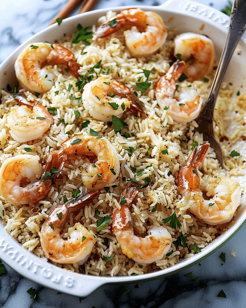 A quick and flavorful one-pan meal featuring juicy shrimp cooked in a garlic butter sauce served over tender rice. Perfect for busy weeknights or a comforting dinner.