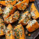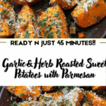 These Garlic Herb Roasted Sweet Potatoes with Parmesan are a flavorful and easy side dish featuring tender roasted sweet potatoes tossed with garlic, herbs, and a touch of Parmesan cheese for added depth and richness.