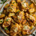 This Garlic Parmesan Chicken and Potatoes recipe is a hearty, one-pan dish featuring tender chicken and crispy potatoes roasted with garlic, herbs, and a generous sprinkle of Parmesan cheese.