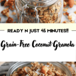 This grain-free coconut granola is a healthy, flavorful snack that can be customized to fit your tastes. Packed with nutritious nuts and seeds and sweetened naturally with maple syrup, it’s a great option for breakfast or a snack. Whether you enjoy it by the handful, as a topping for yogurt, or mixed into smoothie bowls, it’s a crunchy, satisfying choice for anyone looking to avoid grains and gluten.