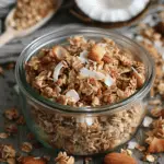 A crunchy, naturally sweetened grain-free coconut granola made with nuts, seeds, and coconut flakes. Perfect for breakfast or snacking, this gluten-free granola is baked until golden and crisp.