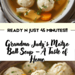 Grandma Judy’s Matzo Ball Soup is a comforting, traditional Jewish dish featuring light and fluffy matzo balls simmered in a rich homemade chicken broth with vegetables. Perfect for holidays or any time you need a warm bowl of goodness.