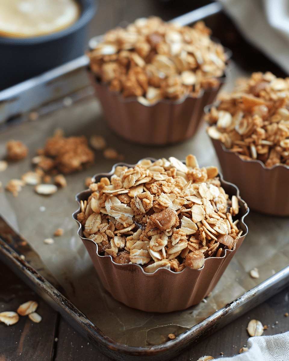- Allow the granola cups to cool completely before removing from the tin.