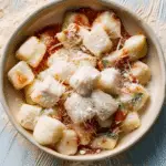 Un gratin savoureux et réconfortant de gnocchis moelleux, nappés d’une sauce tomate maison parfumée, avec une touche de ricotta fondante et de fromage gratiné. Parfait pour un dîner rapide et gourmand.