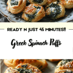 Greek Spinach Puffs are a delicious Mediterranean-inspired appetizer that combines flaky phyllo pastry with a creamy, flavorful spinach and cheese filling. They are easy to prepare, versatile, and perfect for entertaining, snacking, or adding a savory touch to any meal. Once you try these golden, crispy bites, they are sure to become a favorite recipe for gatherings and everyday cooking.