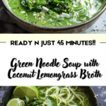 Green Noodle Soup with Coconut Lemongrass Broth is the kind of recipe that feels comforting and refreshing at the same time. With its fragrant broth, tender noodles, and colorful vegetables, it delivers a beautiful balance of creaminess, brightness, and warmth. Whether you make it exactly as written or customize it with your favorite vegetables and add-ins, this is a flavorful bowl you’ll want to come back to again and again.