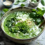 A fragrant and nourishing green noodle soup infused with coconut milk, lemongrass, and herbs for a vibrant, comforting bowl. This vegan and gluten-free dish is rich, aromatic, and perfect for a light yet satisfying meal.