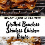 Juicy and tender boneless skinless chicken thighs seasoned with spices and grilled to perfection, making them an easy and flavorful meal for any occasion.