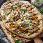 This Grilled Caramelized Onion, Blue Cheese, and Apple Butter Flatbread is a sweet and savory gourmet-style dish featuring creamy blue cheese, tangy apple butter, and deeply caramelized onions on a crispy grilled flatbread.