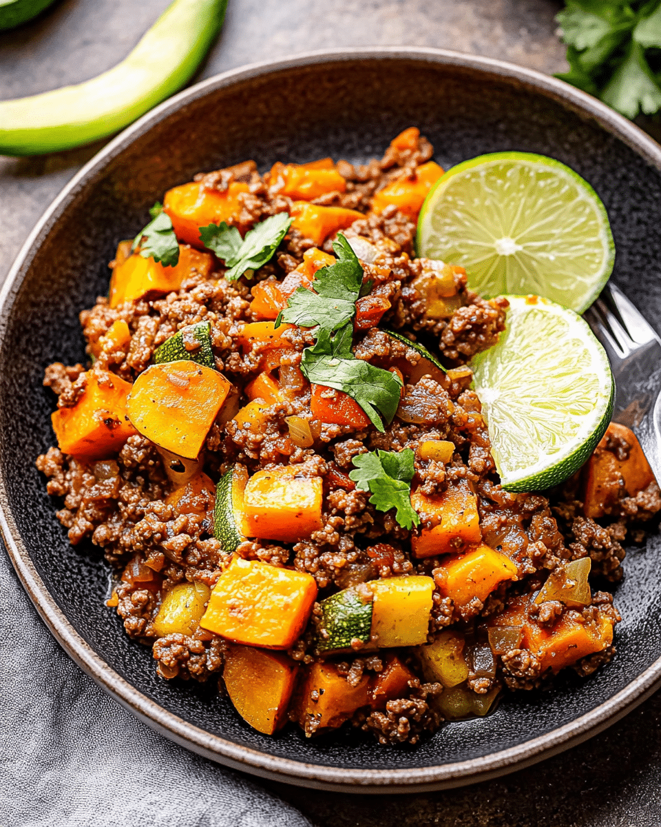 This Ground Beef Zucchini Sweet Potato Skillet is a one-pan meal that combines hearty ground beef, sweet potatoes, and crispy zucchini with a touch of smoky paprika and oregano. It’s a flavorful, nutritious, and easy-to-make dinner that’s perfect for busy nights.