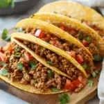 Store leftover taco meat in an airtight container in the refrigerator for up to 3 days. To reheat, warm it in a skillet over medium heat or microwave in short intervals, stirring occasionally. If the mixture thickens too much, add a splash of broth or water to loosen it. Tortillas are best warmed fresh before serving.