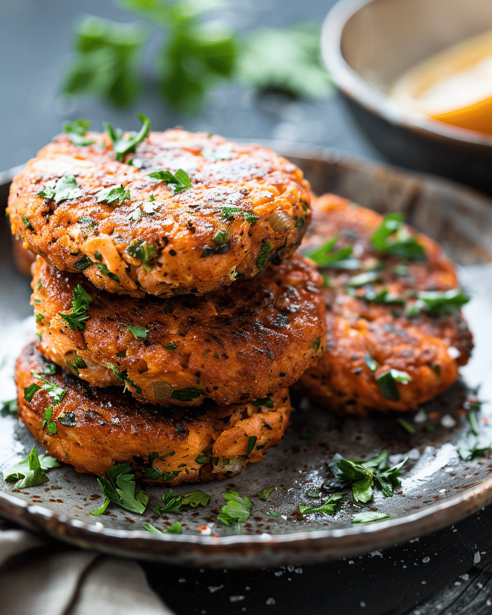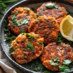 Flavorful salmon patties infused with harissa and bright orange zest, pan-seared until crisp and served tender inside.