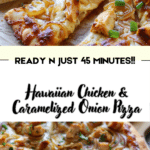 This Hawaiian Chicken & Caramelized Onion Pizza is a satisfying way to bring sweet and savory flavors together in one delicious dish. With marinated chicken, caramelized onions, pineapple, and gooey mozzarella, it’s a crowd‑pleaser perfect for family dinners or casual gatherings. Customize the toppings to your taste and enjoy a homemade pizza that’s full of flavor.