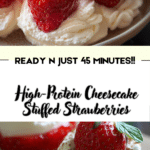 High-Protein Cheesecake Stuffed Strawberries are a fresh, no-bake treat that combines juicy berries with a creamy, protein-packed cheesecake filling. They’re light, naturally sweet, and perfect for a quick snack, healthy dessert, or party platter addition.