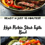 This high-protein steak fajita bowl is a flavorful, easy dinner that brings together tender steak, roasted vegetables, and cauliflower rice in one satisfying meal. It is simple enough for a weeknight, flexible enough for meal prep, and packed with the kind of bold fajita flavor that keeps everyone coming back for more.