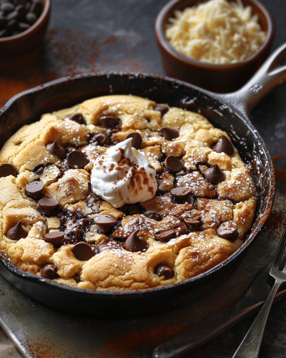 This homemade pizookie combines the best parts of a chocolate chip cookie and a warm skillet dessert, topped with ice cream. It’s easy, customizable, and perfect for any occasion—from parties to late-night cravings.