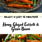 These honey glazed carrots and green beans are a vibrant, sweet and savory side dish perfect for weeknight dinners or holiday meals. Fresh vegetables are lightly sautéed and coated in a buttery honey glaze for irresistible flavor.