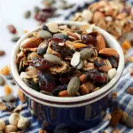 This homemade trail mix is a wonderful go‑to snack combining wholesome ingredients with flexibility and flavour. It allows you to skip the additives and excess salt/sugar found in many commercial mixes, while customizing the mix exactly how you like it. Whether you’re prepping snacks for a hike, packing something for the office, or simply want a healthier store‑cupboard treat, this trail mix hits the spot. Try mixing your favourite combo of nuts, seeds, dried fruits and fun add‑ons—and enjoy the crunch, the energy boost and the satisfaction of a snack you made.