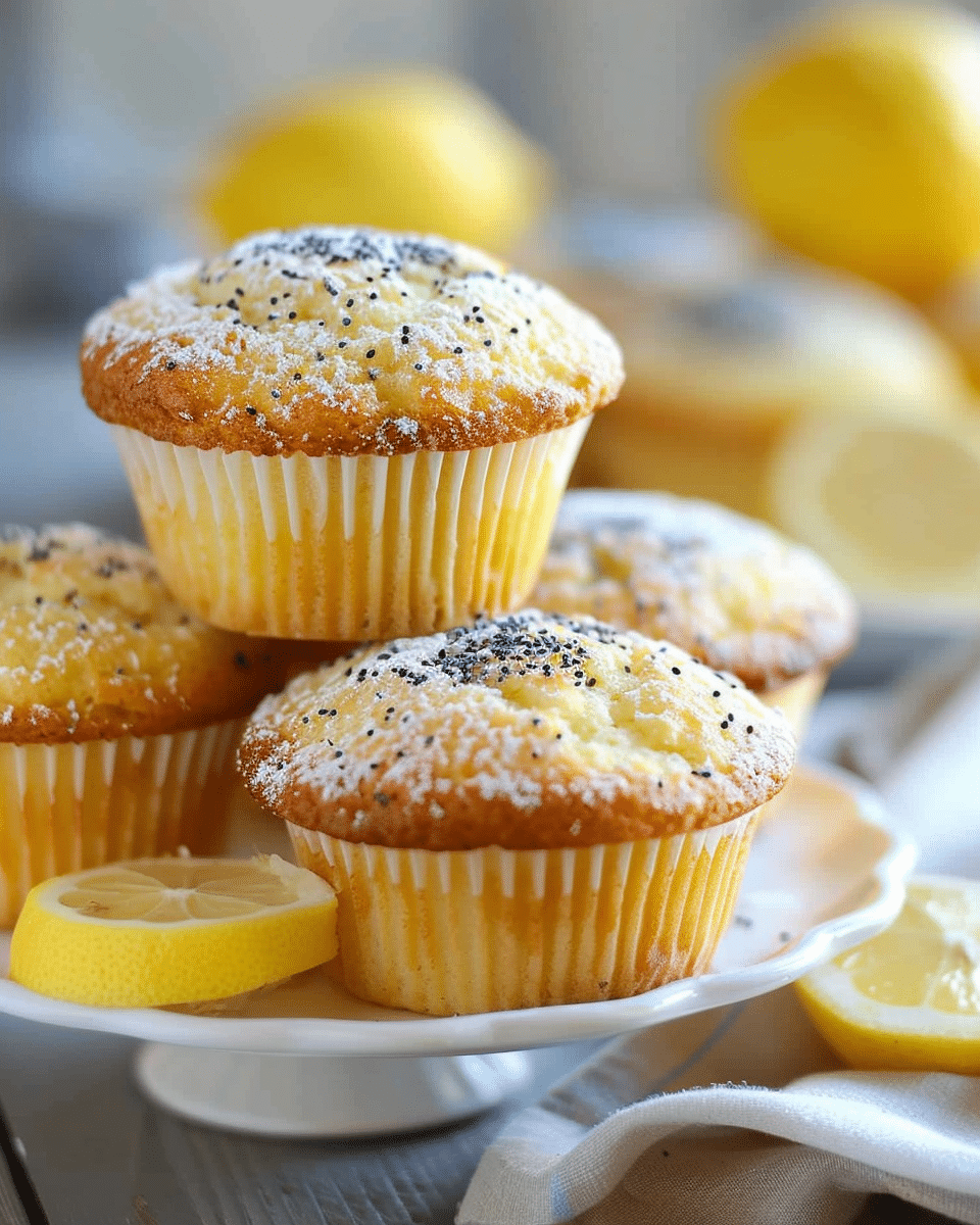Soft, moist lemon poppy seed muffins bursting with fresh citrus flavor and a tender crumb, perfect for breakfast or a light dessert.