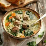 This cozy Italian Wedding Soup combines tender homemade meatballs, hearty pearl couscous, and vibrant greens in a savory broth. It’s comforting, easy to prepare, and perfect for both weeknight dinners and make-ahead meals.