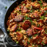 This jambalaya combines bold Cajun flavors with tender meats and rice for a satisfying one‑pot meal that’s easy to make and perfect for sharing. Whether you’re making it for a weeknight dinner or a festive occasion, it’s flavorful, filling, and endlessly customizable.