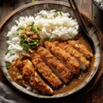 Japanese Katsu Curry is a delicious and comforting dish made with crispy breaded chicken cutlets and a rich, savory curry sauce served over steamed rice. This well-balanced meal delivers a satisfying combination of textures and flavors, from crunchy to creamy, savory to subtly sweet.