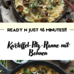Kartoffel-Pilz-Pfanne mit Bohnen is the kind of meal that proves simple ingredients can create something deeply comforting and full of flavor. With tender potatoes, savory mushrooms, green beans, and a creamy seasoned sauce, it is a delicious vegetarian dish that fits both busy weeknights and relaxed dinners at home. Once you try it, it may quickly become one of your favorite skillet meals.
