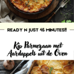 Kip Parmezaan met aardappels uit de oven is een heerlijk en eenvoudig ovengerecht met malse kipfilet in een krokant Parmezaans korstje, geserveerd met perfect gekruide aardappeltjes.