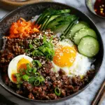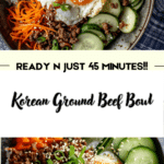 A quick and flavorful Korean Ground Beef Bowl made with savory sesame soy beef served over warm rice and topped with fresh vegetables. Ready in just 25 minutes, this customizable meal is perfect for busy weeknights or meal prep.