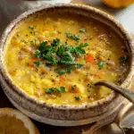 A refreshing and hearty lemon lentil soup made with red lentils, aromatic vegetables, and brightened with lemon juice. Perfect for a healthy and comforting meal.