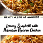 Lemony Spaghetti with Parmesan Popcorn Chicken is a delightful twist on classic pasta — combining the freshness of lemon, the richness of Parmesan, and the satisfying crunch of breaded chicken. It’s easy enough for a weeknight dinner, but flavorful enough to serve when you want to impress. Give it a try the next time you crave comfort food with a bit of zest and crunch.