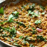 A hearty and flavorful lentil spinach skillet packed with plant-based protein and vibrant spices. This one-pan dish is perfect for a quick and satisfying weeknight meal.