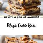 These Magic Cookie Bars are rich, chewy dessert bars layered with chocolate, coconut, and pecans over a buttery graham cracker crust. Sweetened condensed milk ties everything together for a decadent treat.