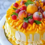 A light and creamy mango mousse cake layered over a soft sponge base and topped with a silky mango curd. This refreshing dessert is perfect for warm days and special occasions.