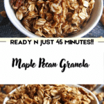 You’ll love this granola because it hits the sweet‑nutty‑toasty trifecta: the maple syrup brings natural sweetness and rich flavor, the pecans give satisfying crunch and depth, and the oats provide a wholesome base. It’s easy to make, wonderfully aromatic as it bakes, and stores beautifully so you can enjoy a handful any time.