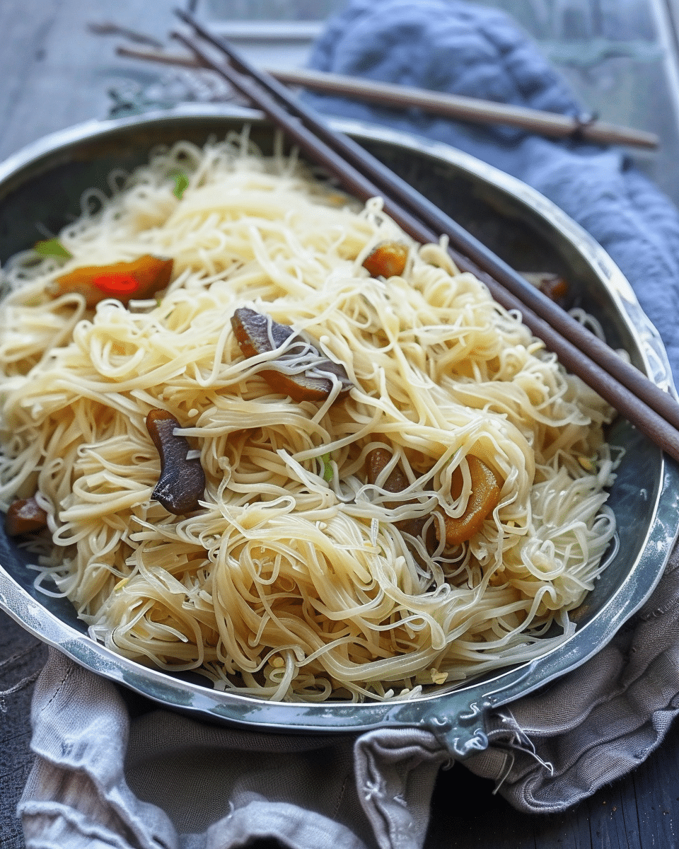 This recipe for Mei Fun delivers a satisfying blend of tender rice noodles, crisp vibrant vegetables, and aromatic seasoning. It’s both accessible and adaptable—from a simple vegetarian weeknight dish to a more elaborate protein‑rich version. With a bit of planning (soaking mushrooms and noodles ahead), you’ll have a flavorful, full‑bodied meal ready in about 20 minutes of active cooking. Enjoy bringing this versatile and delicious dish into your weekly rotation.