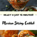 A refreshing and zesty Mexican Shrimp Cocktail made with cooked shrimp, fresh vegetables, and a tangy tomato-lime sauce. Perfect as an appetizer or light meal served chilled with tortilla chips.