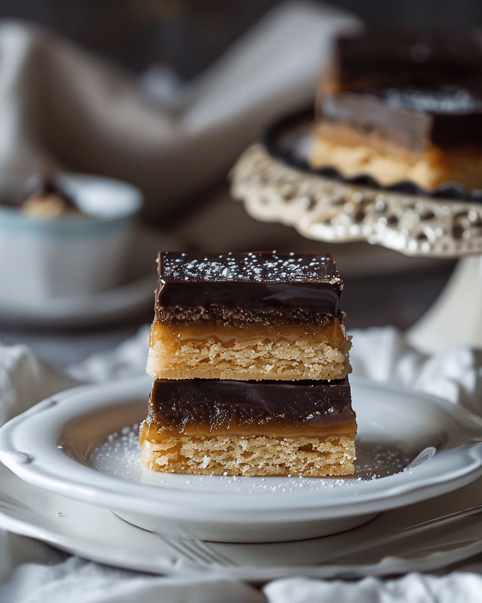 Rich and indulgent millionaire shortbread with a buttery crust, smooth caramel center, and silky chocolate ganache topped with flaky sea salt.