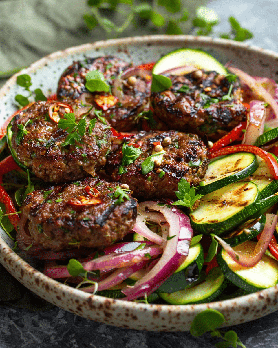 You can easily change this recipe to fit your taste or what you have on hand. Try using ground turkey or chicken instead of beef for a lighter version. Add chopped cilantro or green onions to the burger mixture for extra freshness. If you want more heat, increase the red pepper flakes or add a pinch of cayenne to the burgers. You can also include cucumber or shredded carrots in the salad for more texture and color. For a richer flavor, crumbled feta or a sprinkle of grated Parmesan can be added to the zucchini salad just before serving.