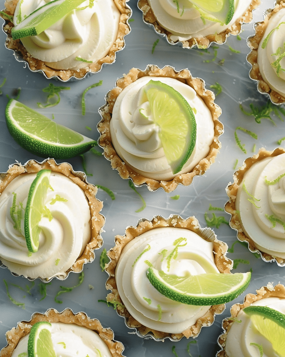 These mini key lime pies strike a delightful balance of tart citrus and sweet creamy comfort, all packed into fun little handheld desserts. They’re simple to pull together thanks to the pre-made crusts and straightforward filling, yet they look and taste special enough for a gathering or treat-yourself moment. With the homemade whipped cream finishing them off, you’ll have a dessert that’s fresh, impressive, and just the right size. Give them a try and enjoy that bright lime flavour in each bite!